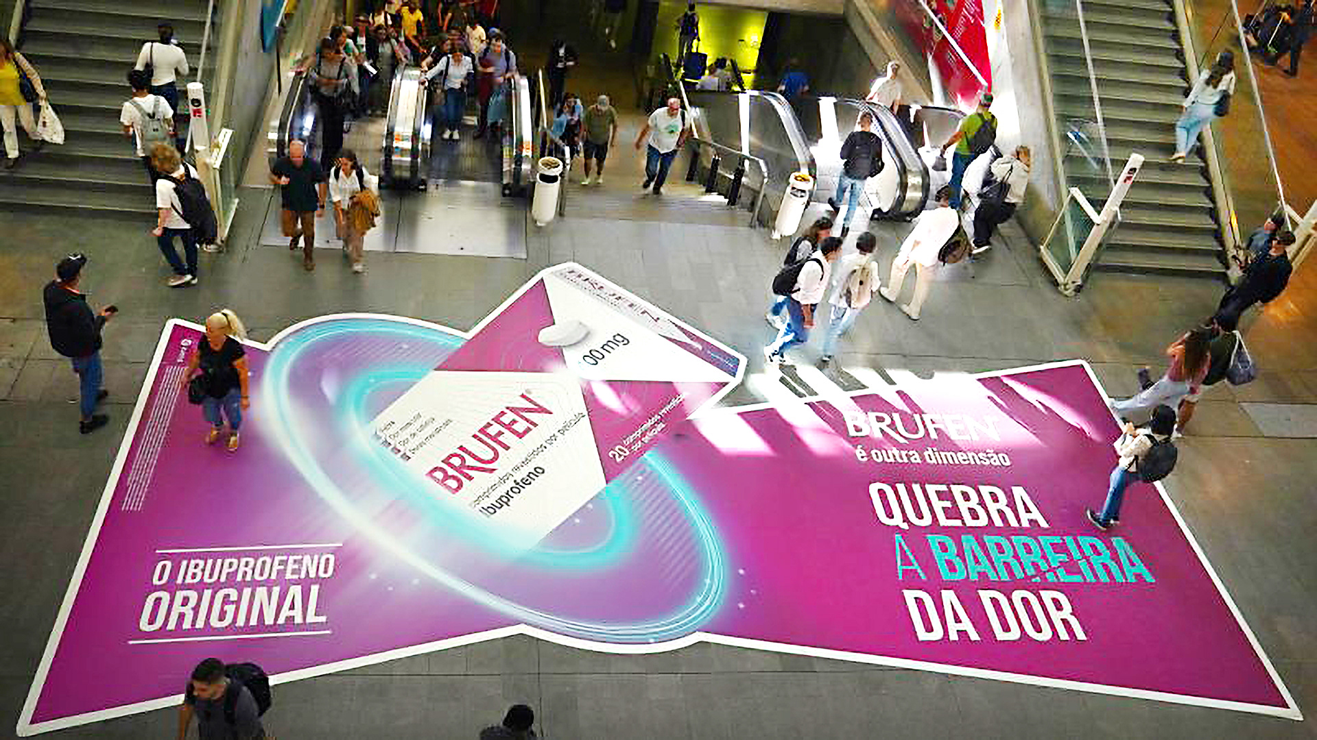 Design and adaptation for multi-market rollout. Developed the English global templates for Brufen’s ‘Portal’ campaign, adapting them for Portugal and Italy. For Portugal, created the key art through to final artwork, producing posters, pharmacy POS, counter display units, A5 leaflets, ceiling posters, shelf wobblers, floor stickers, and window displays. For Italy, adapted the campaign for a static DOOH takeover of a Milan train station, including a large-format floor sticker installation. Portfolio examples shown are from the Portugal launch.